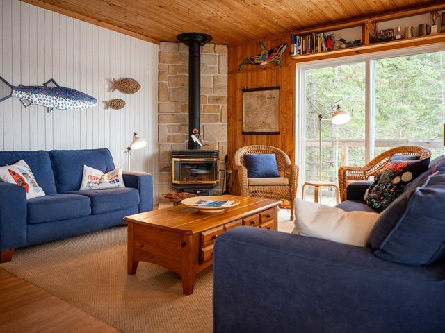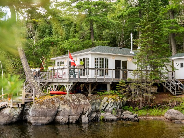 The cottage is bright and lively as you enter the garden doors on the lakeside giving you the impression of being home within nature. This cottage was built close to the shoreline to give water views from every room! This also highlights the short distance from the dock area to the cottage, allowing island life to feel easy. The layout is very functional with 3 bedrooms and 1 bathroom with a composting toilet.